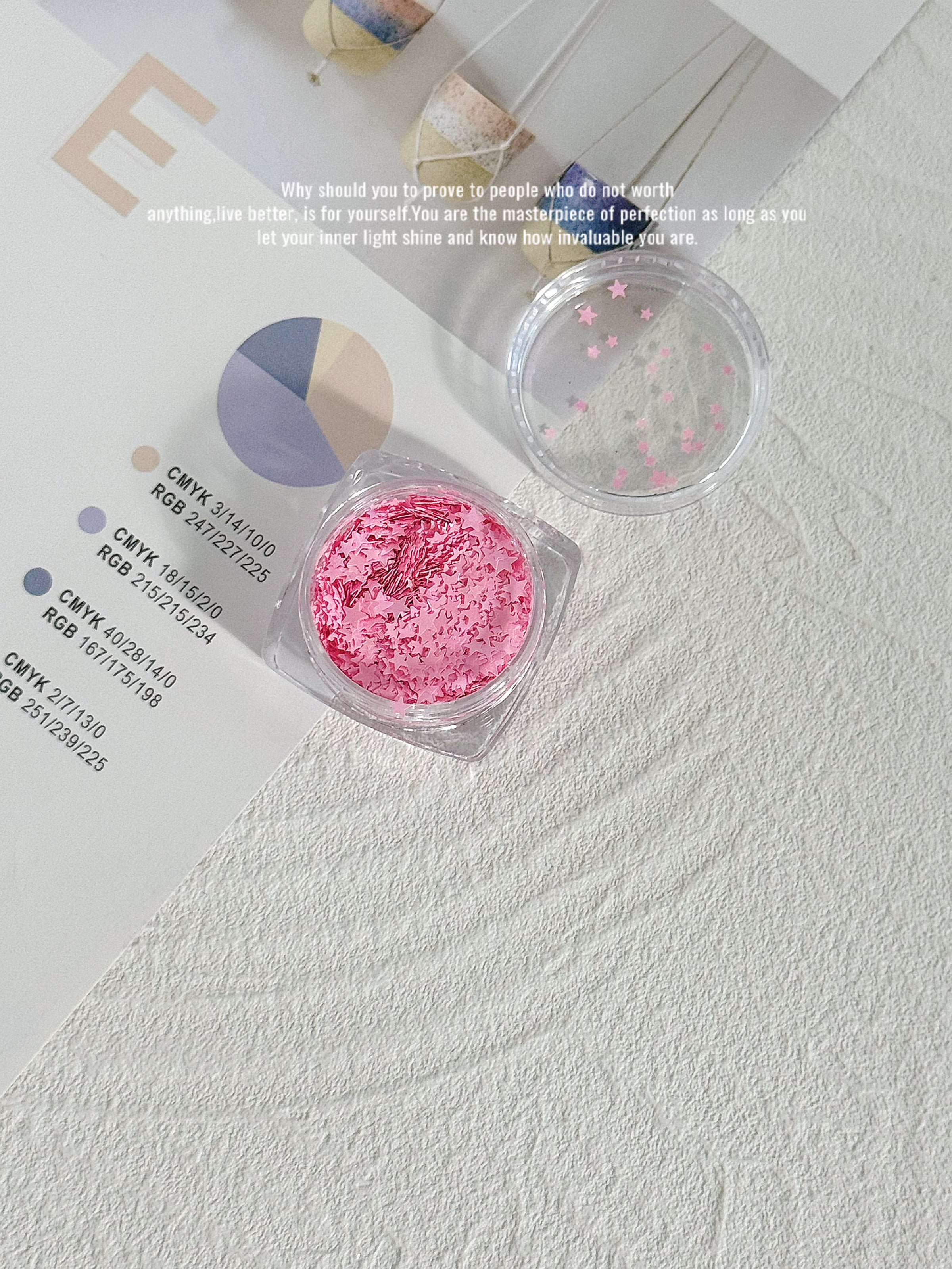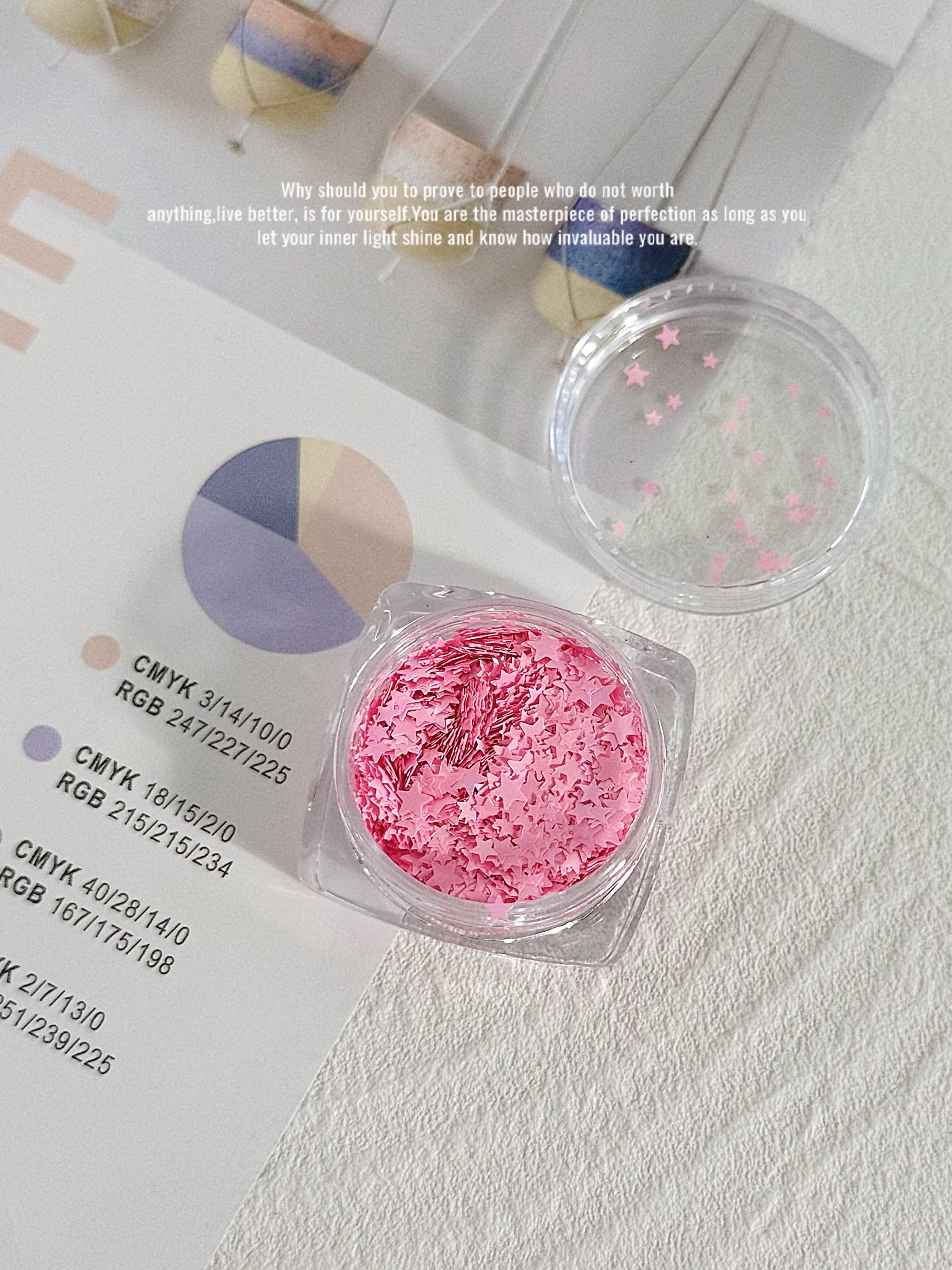 Add a soft and playful accent to your nail designs with these matte pink star glitters.