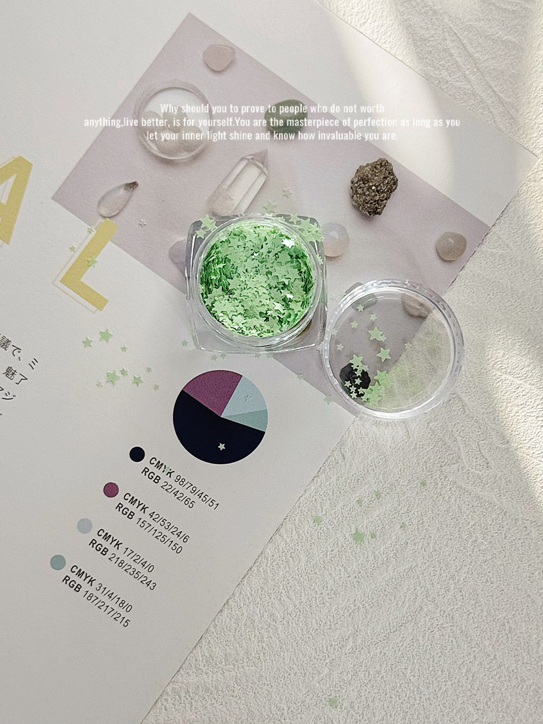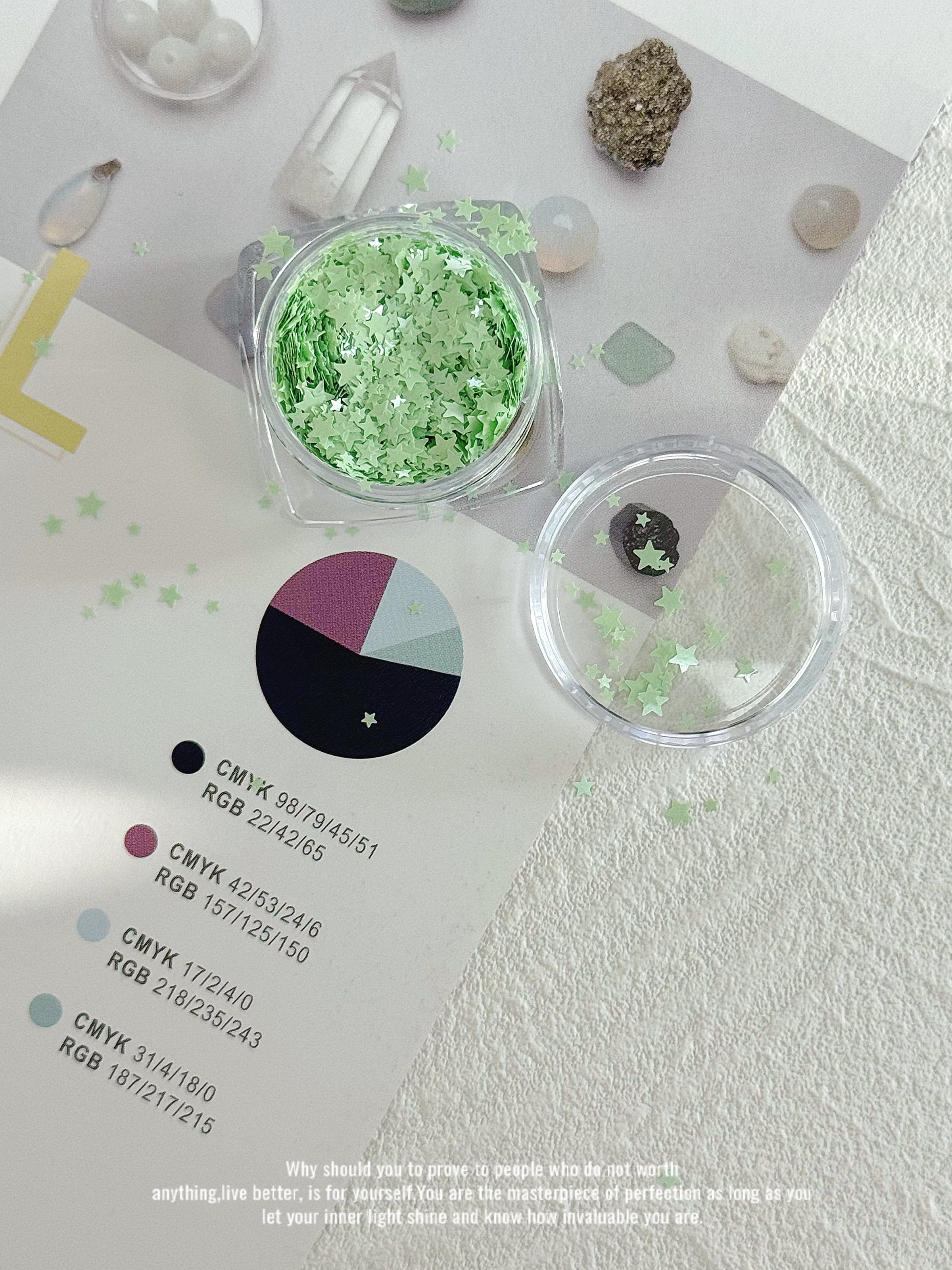 Add a fresh pop of personality to your nail designs with these matte green star-shaped confetti pieces. Their soft, non-glossy finish makes them perfect for creating playful, trendy, or seasonal looks without any extra shine. Whether you’re going for a Y2K vibe, a pastel fantasy, or a minimalist statement, these stars are easy to pair with gel or polish.